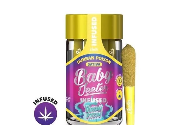 Durban Poison Baby Jeeter Infused: Five .5g Joints 2.5g | Sativa | 35.42% THC Indoor Grown Infused with Distillate Oil & Kief